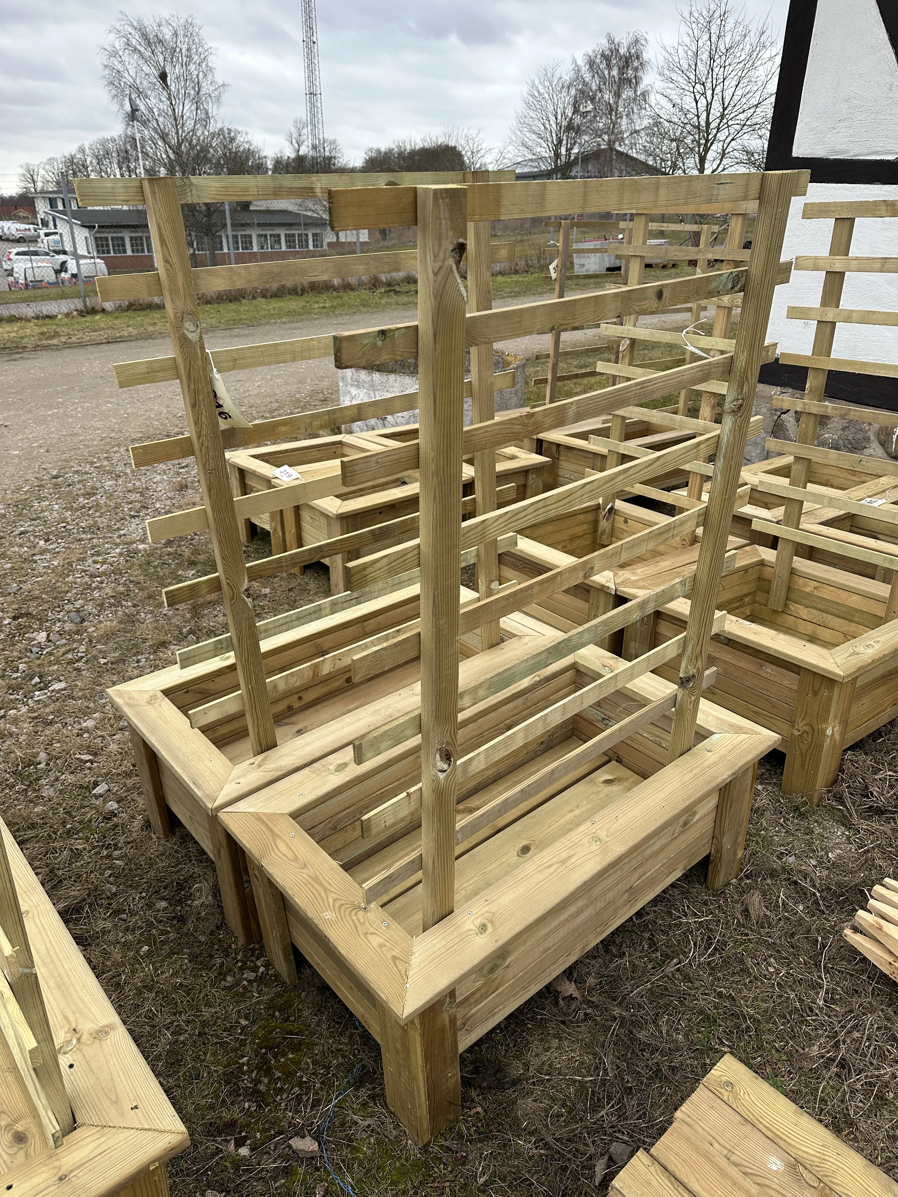 316. 2 större blomlådor med spalje