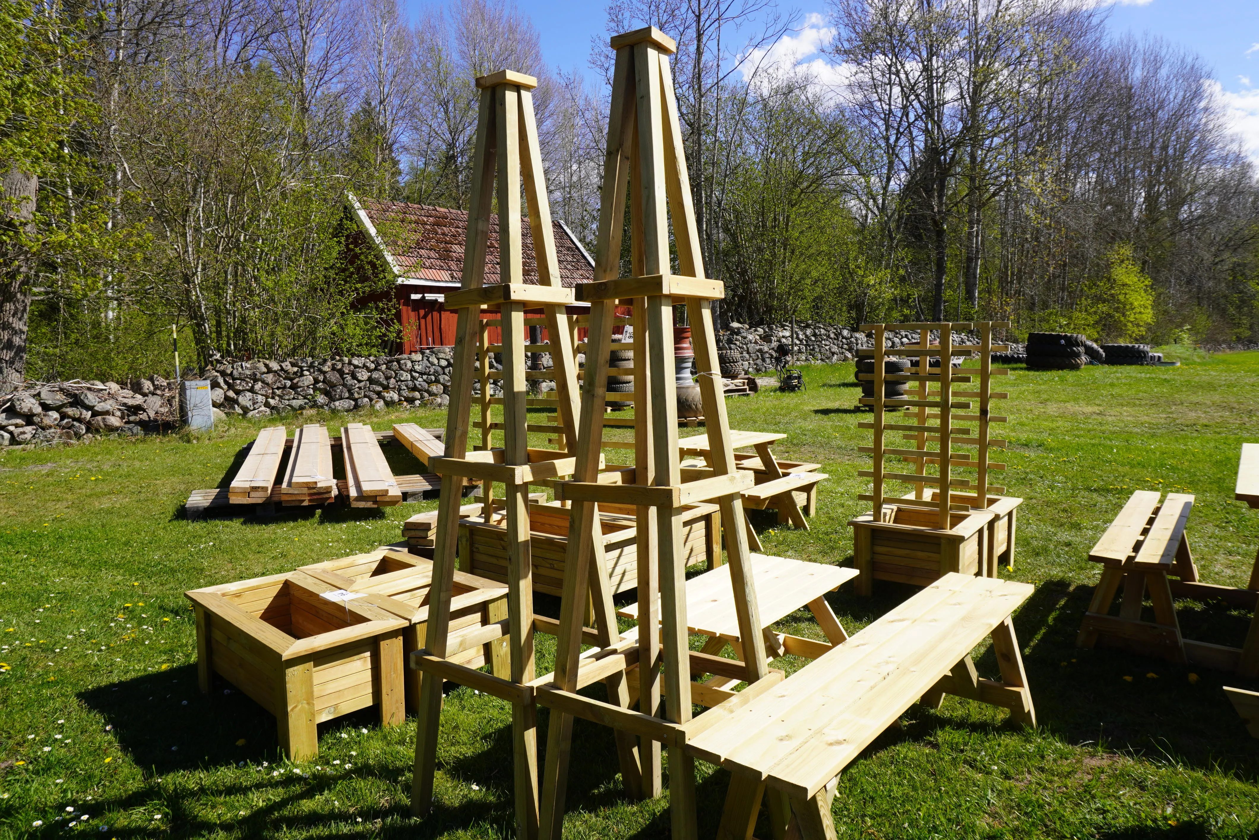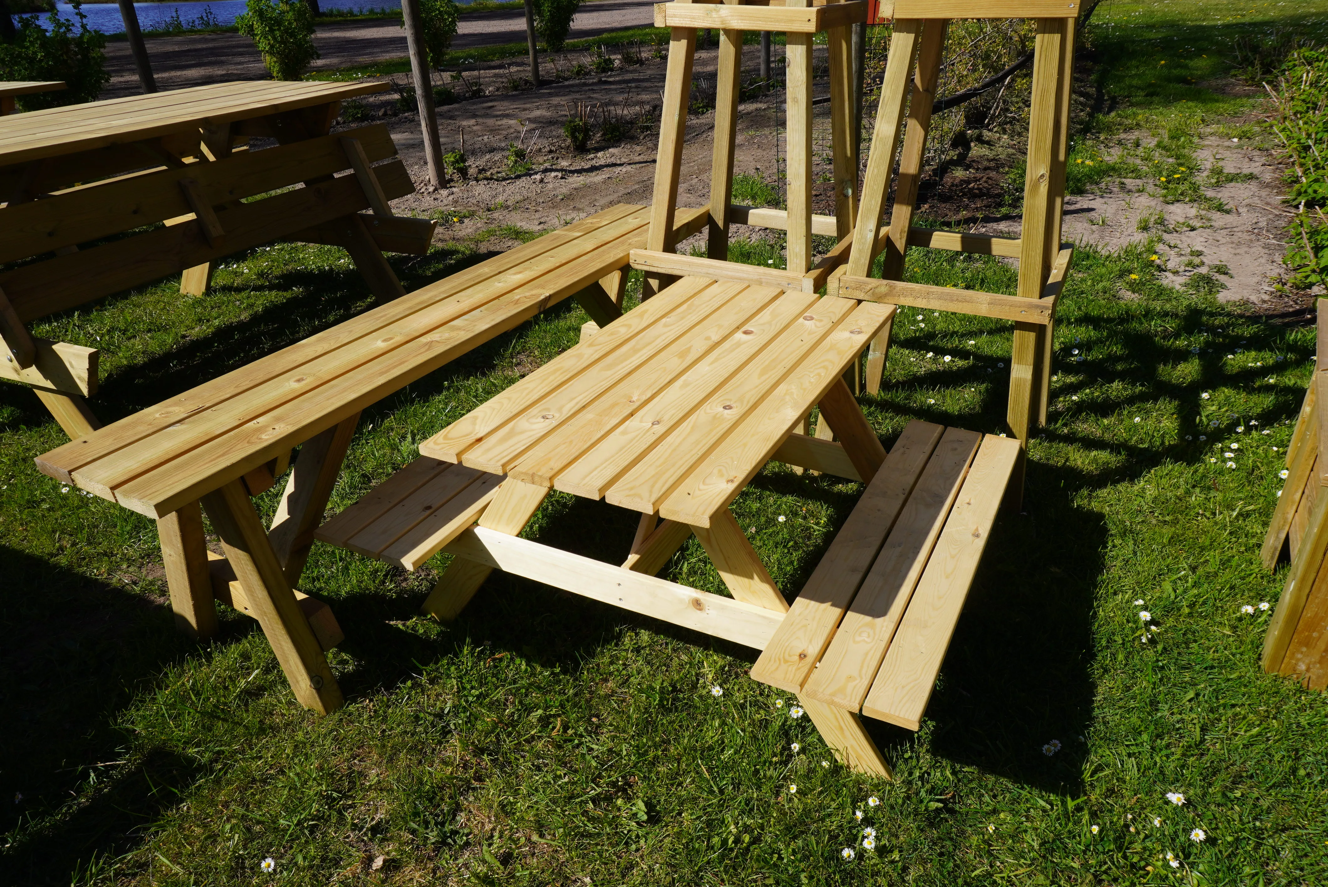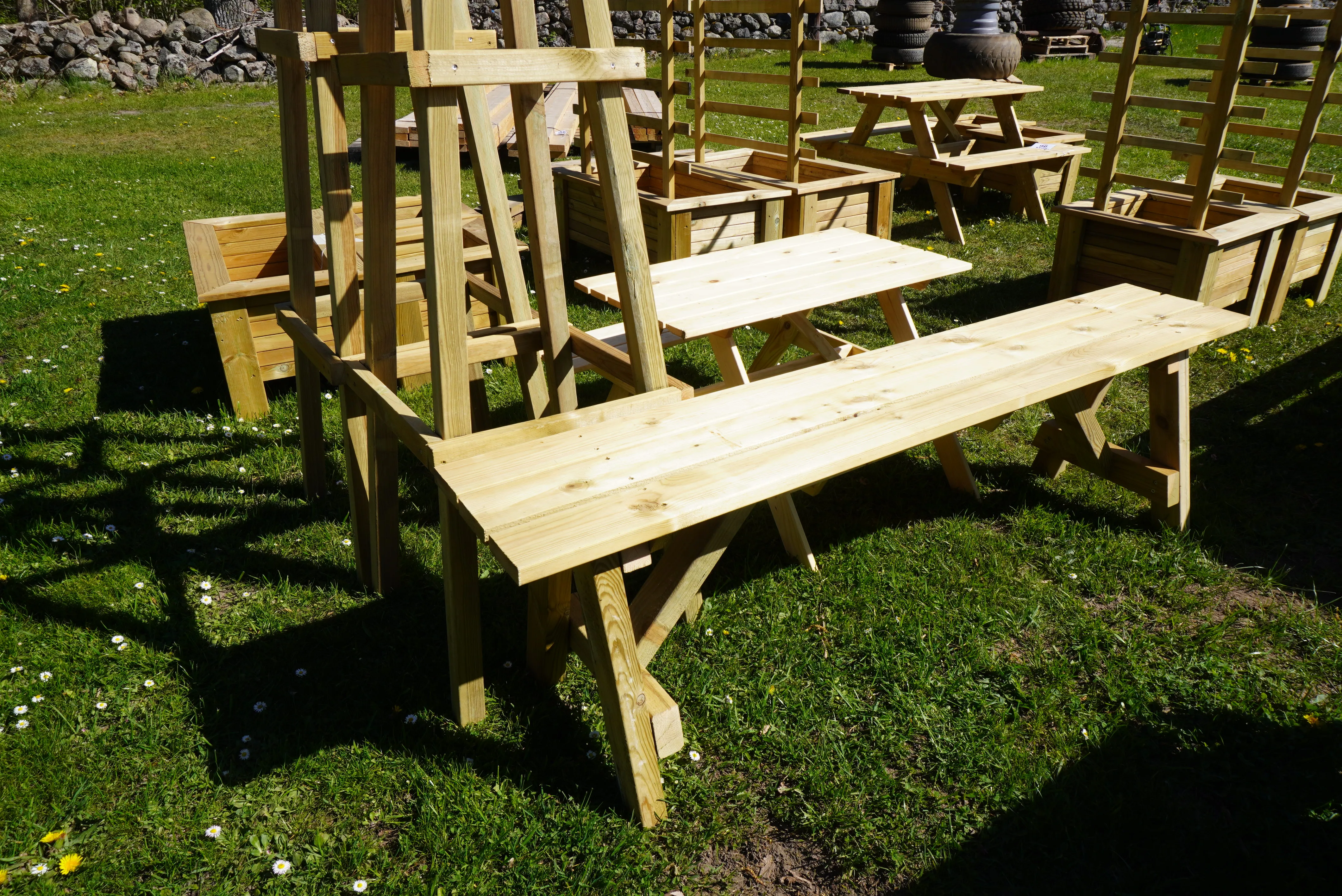 2 st blomställning, 1 bänk, 1 barnbord med bänk