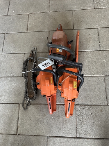 186. 3 motorsågar Husqvarna 5 st lösa svärd 7 st...