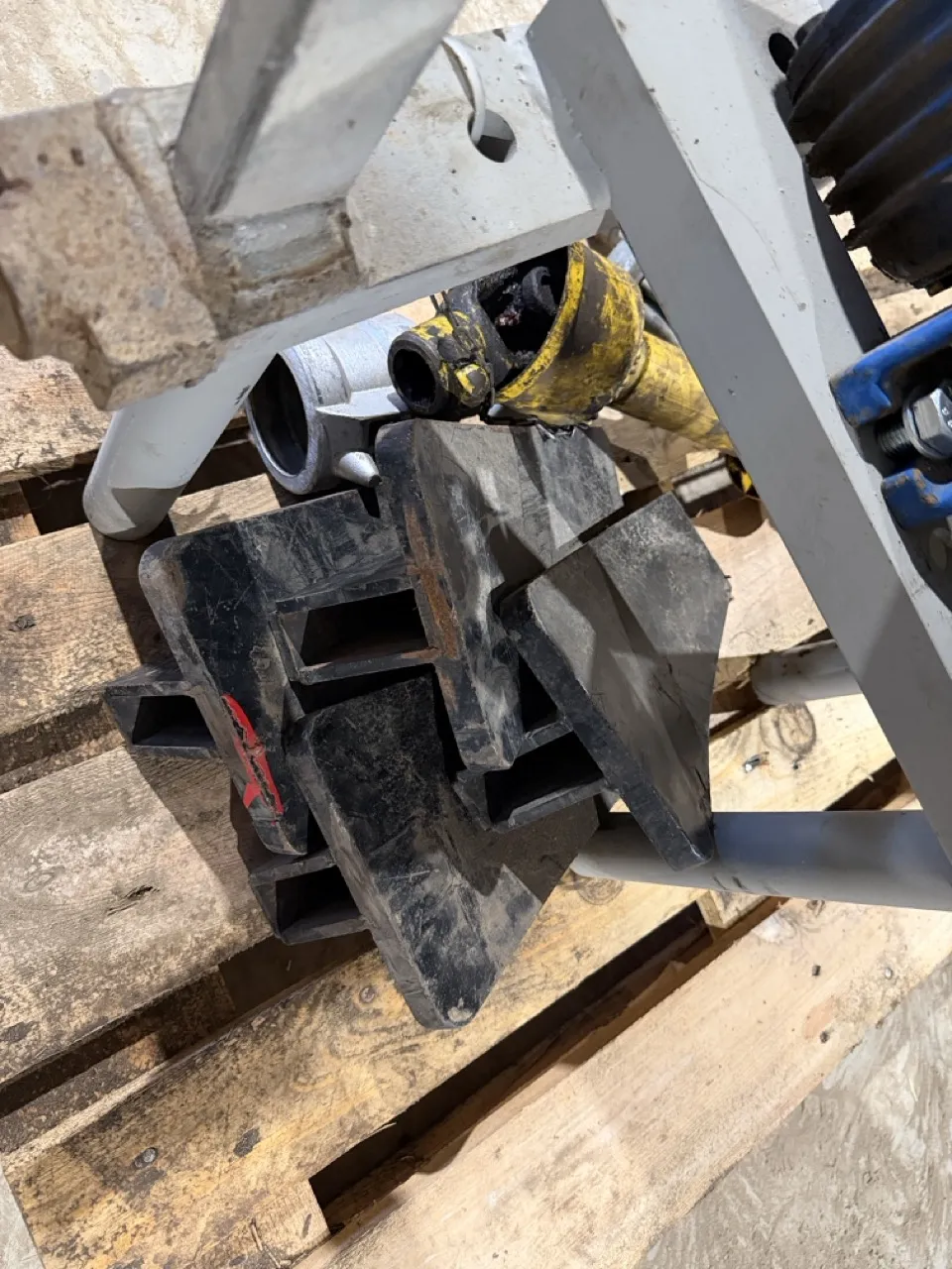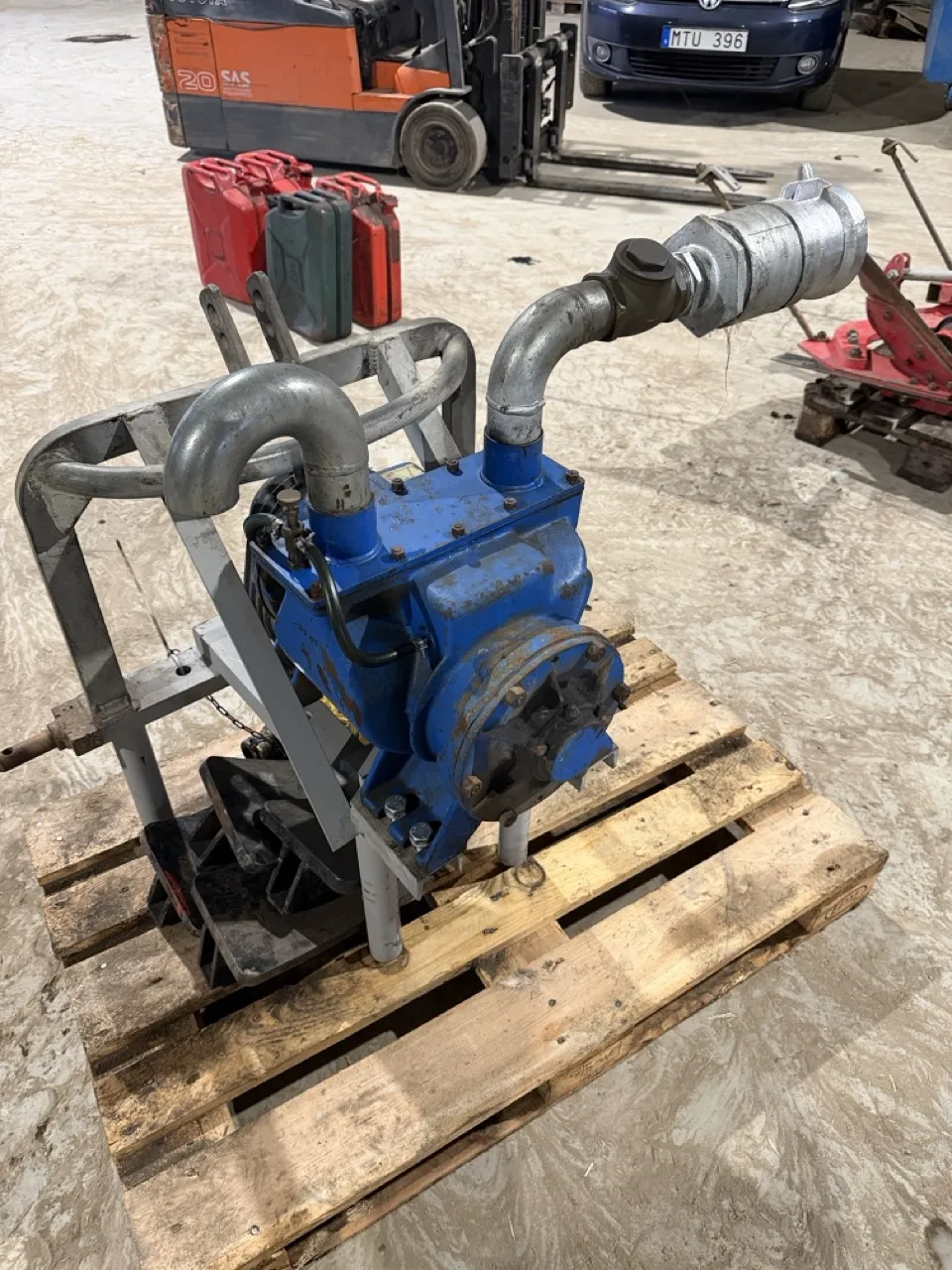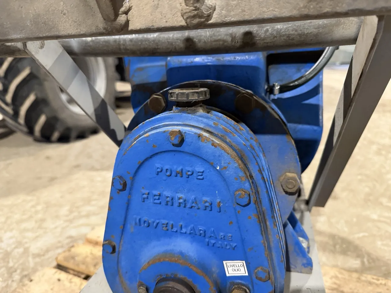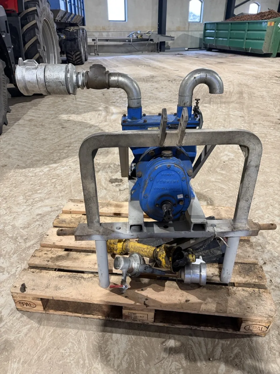 Till att blåsa tomt bevattningsmaskiner. - Traktordriven kompressor på stativ