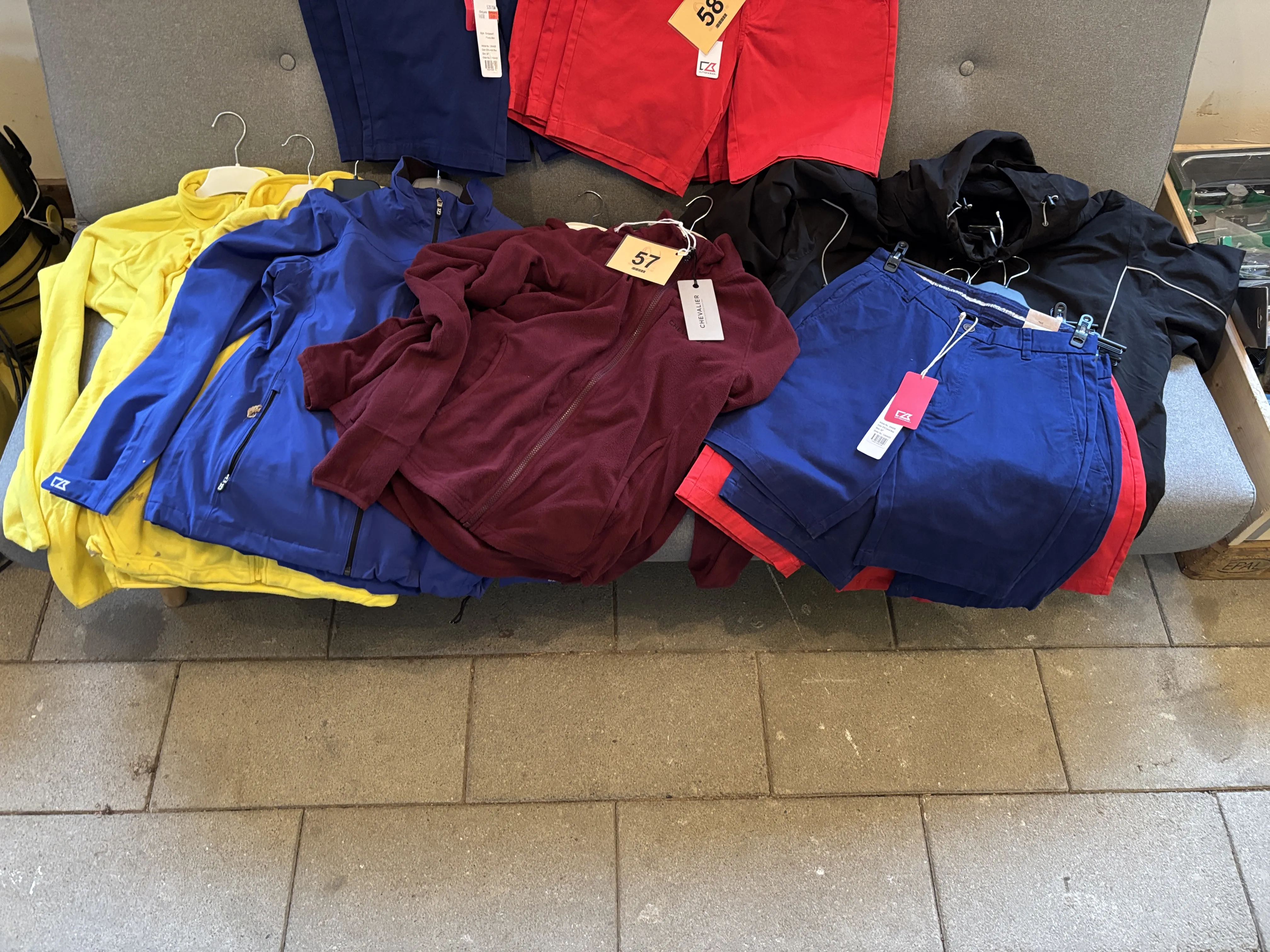 57. Verkstad, 2 jackor, 5 fleece jackor 4 par politiker shorts (bra julklapp)