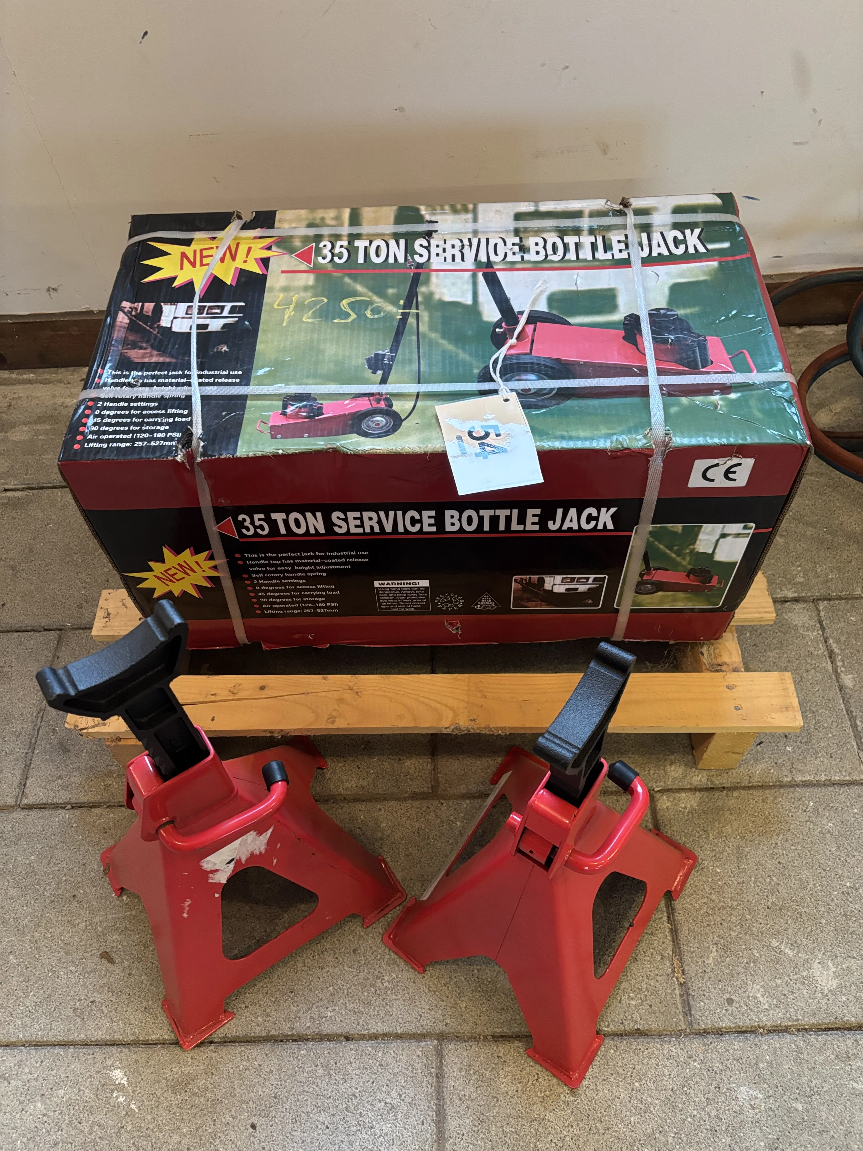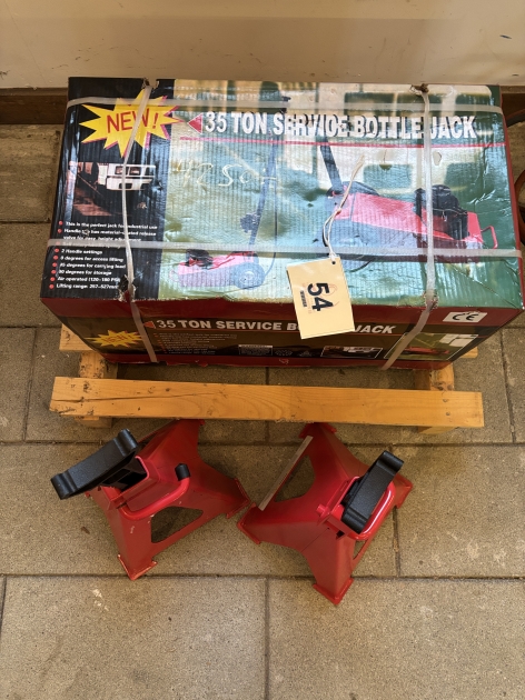 54. Verkstad, Pneumatisk 35 tons lastbils/entreprenad domkraft 6 tons pallbockar