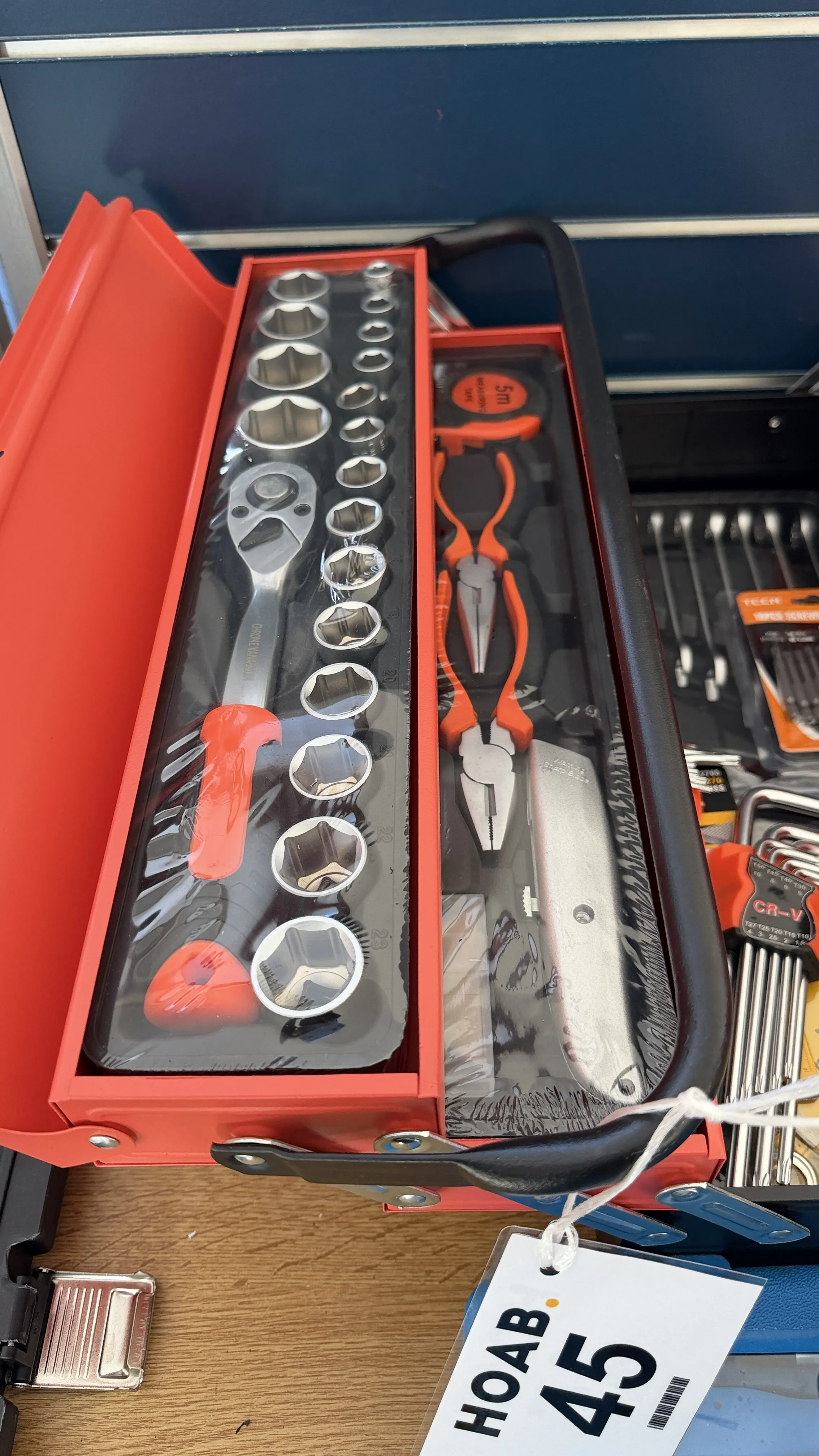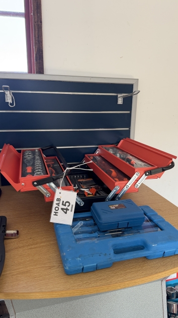 45. Verkstad, Verktygslåda full med verktyg skruvmejselsats krafthylsor